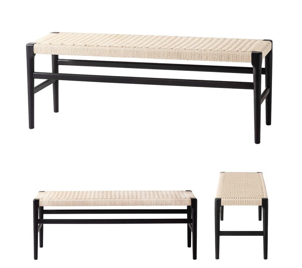 座面に、鹿の子編みという技法を用いて編まれたペーパーコードを使用したベンチ。