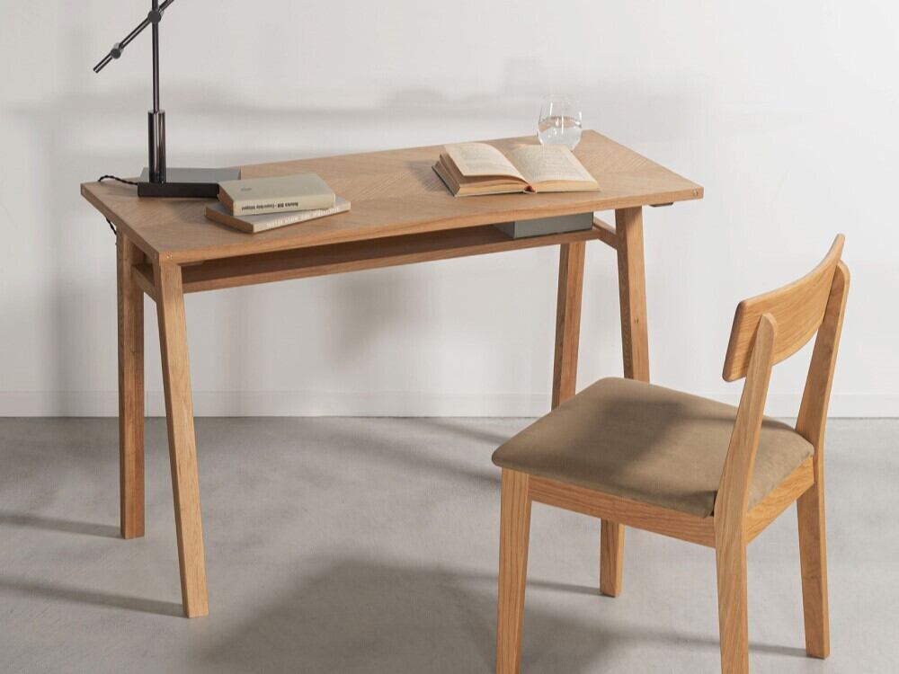 天然木のぬくもりを感じる、シンプルなデザインのデスク。