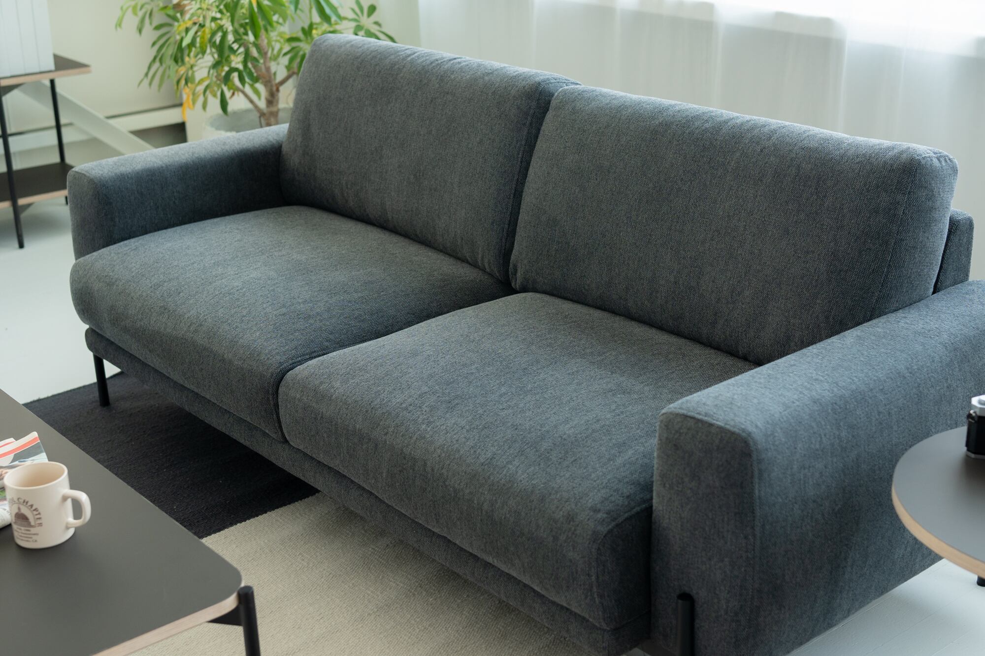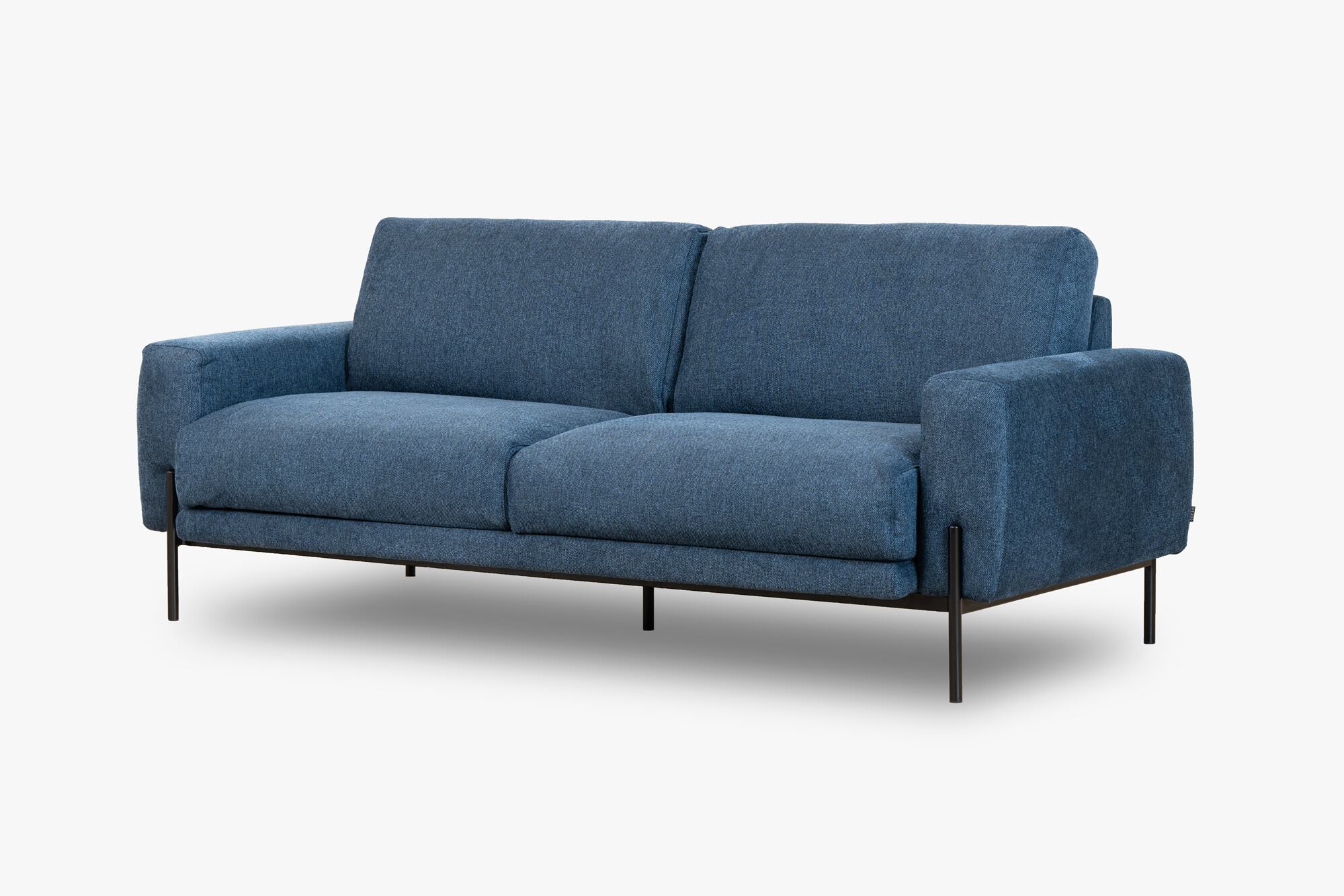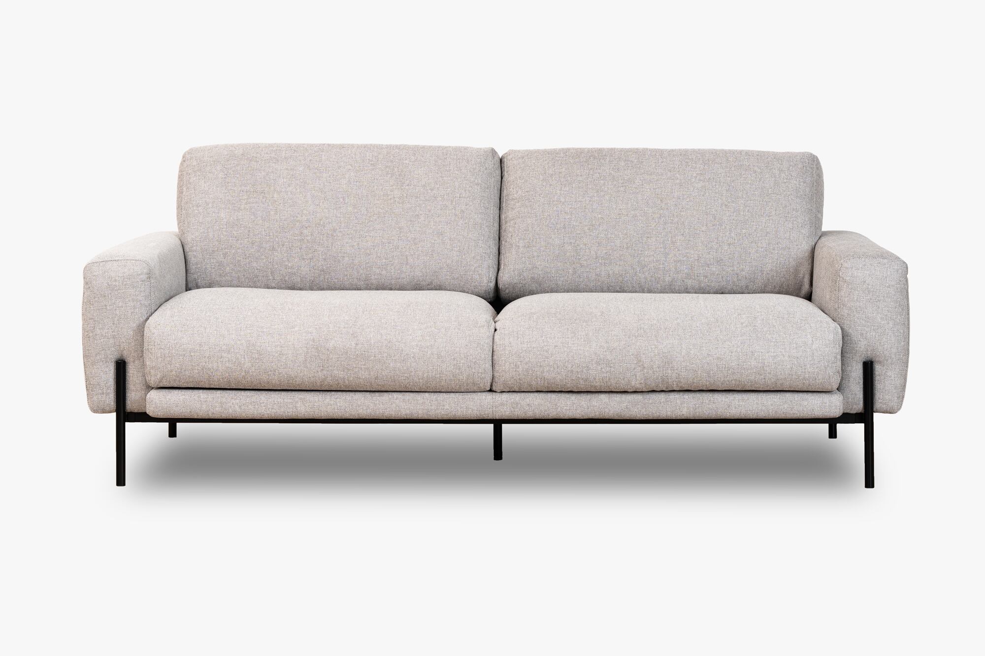 少し飛び出したマットブラックの金属脚は、ボリュームのあるクッション部とシンプルなデザインに、すっきりとしたアクセントを加えます。