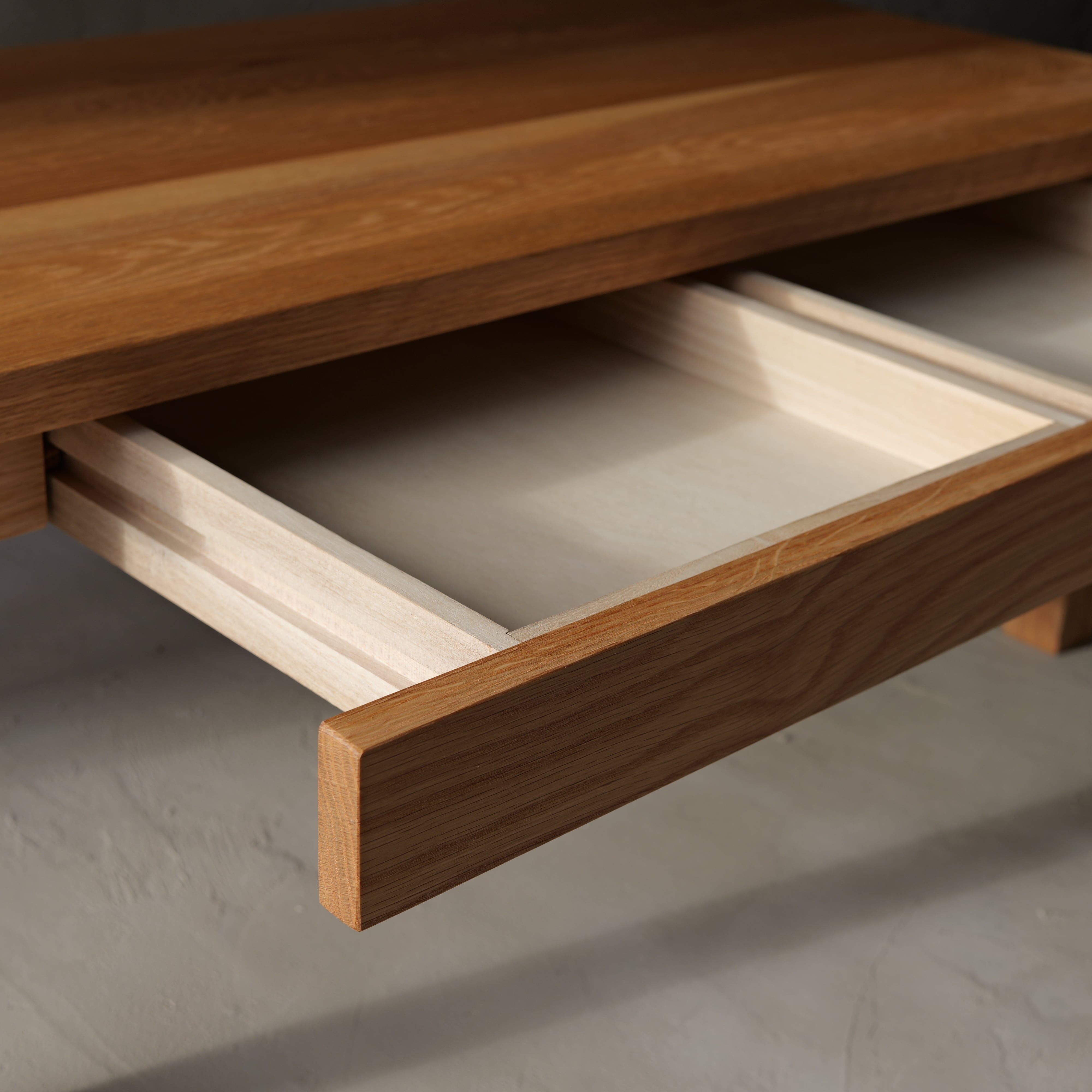 引き出し付きローテーブル(オーク無垢材)です。