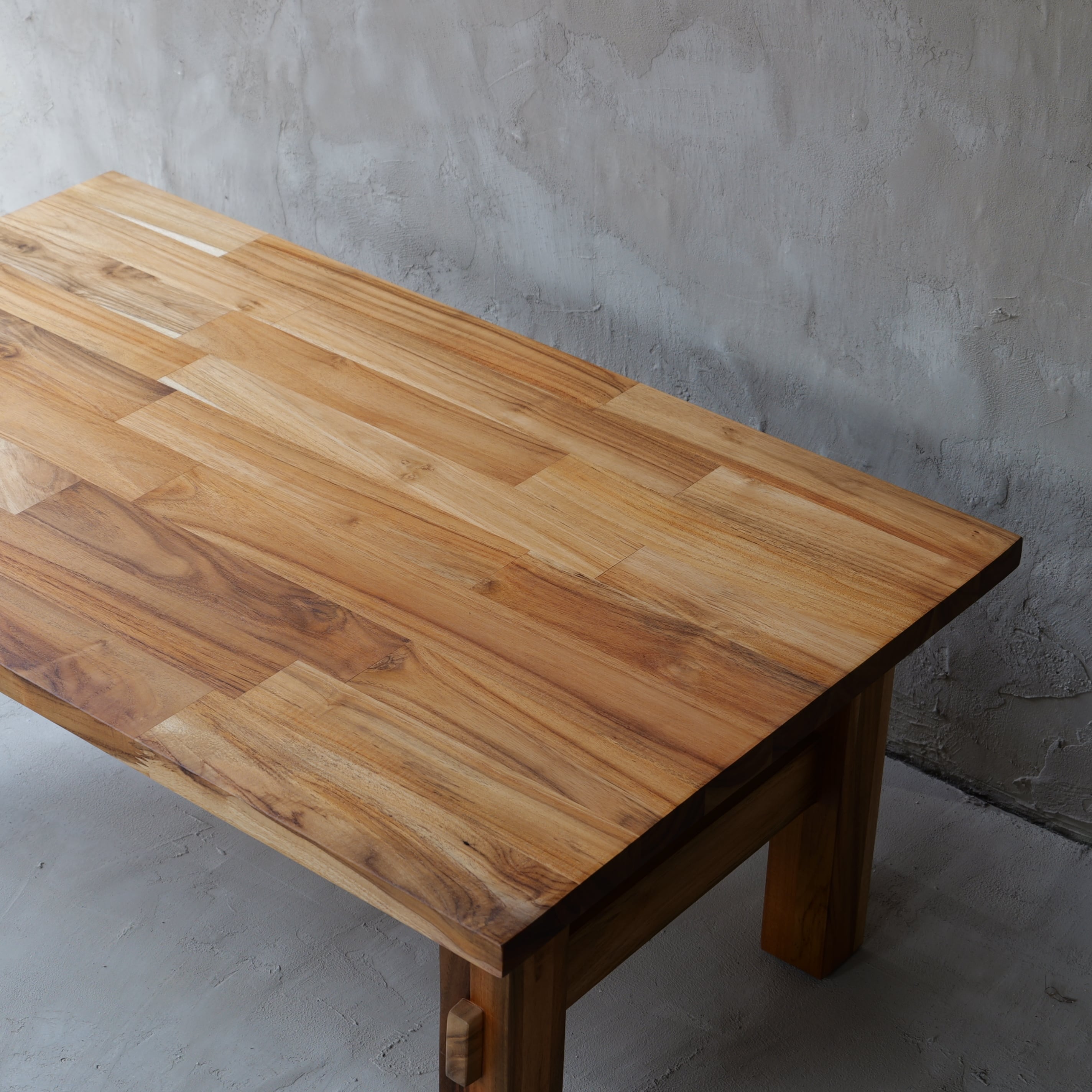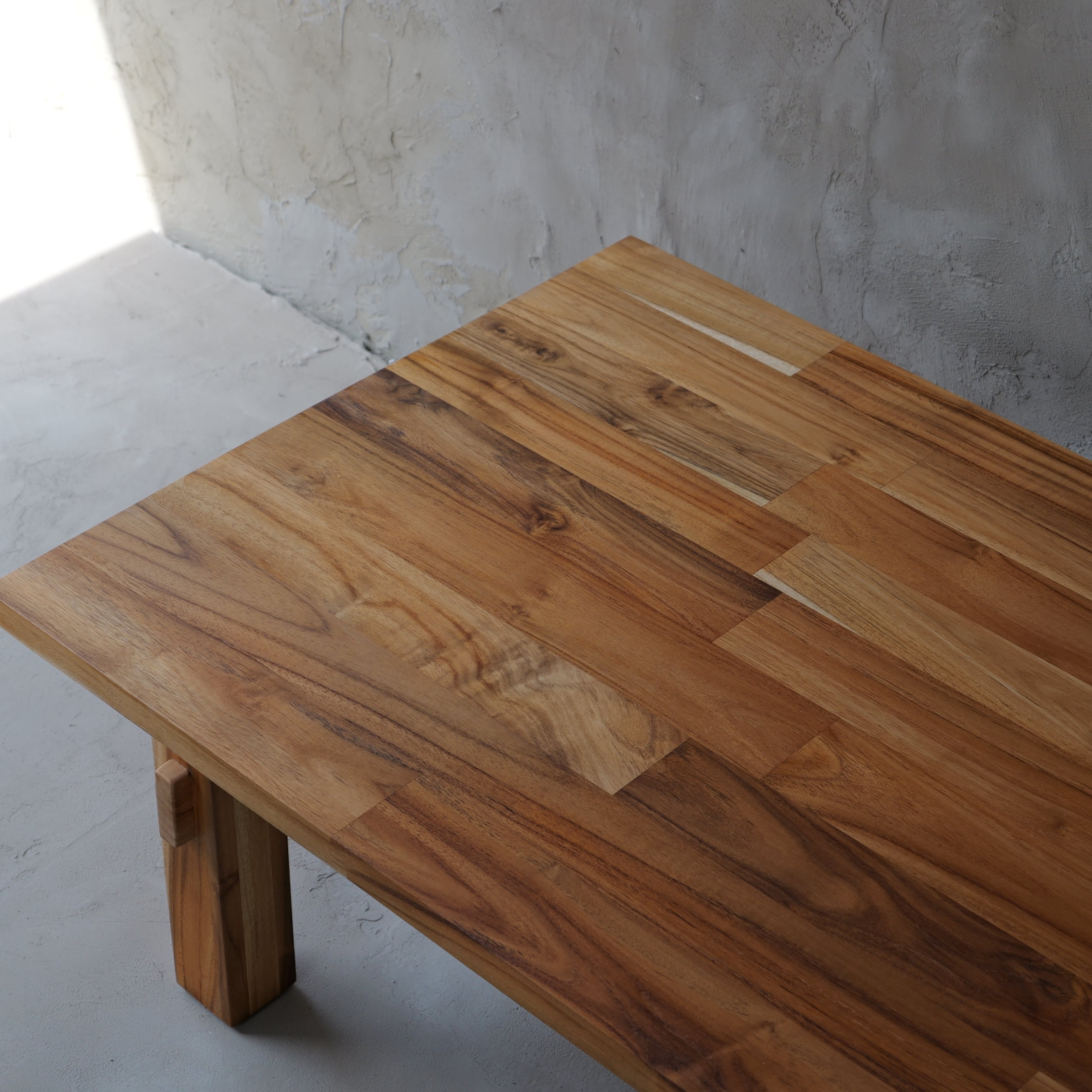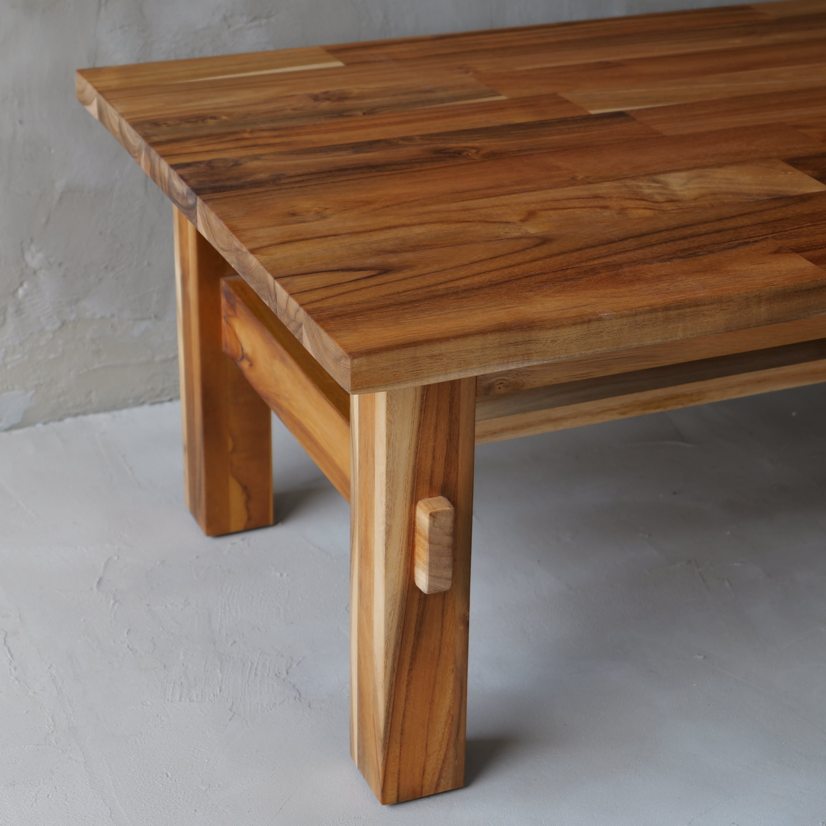 この雰囲気のチーク材ローテーブルを同じようにつくるのは、