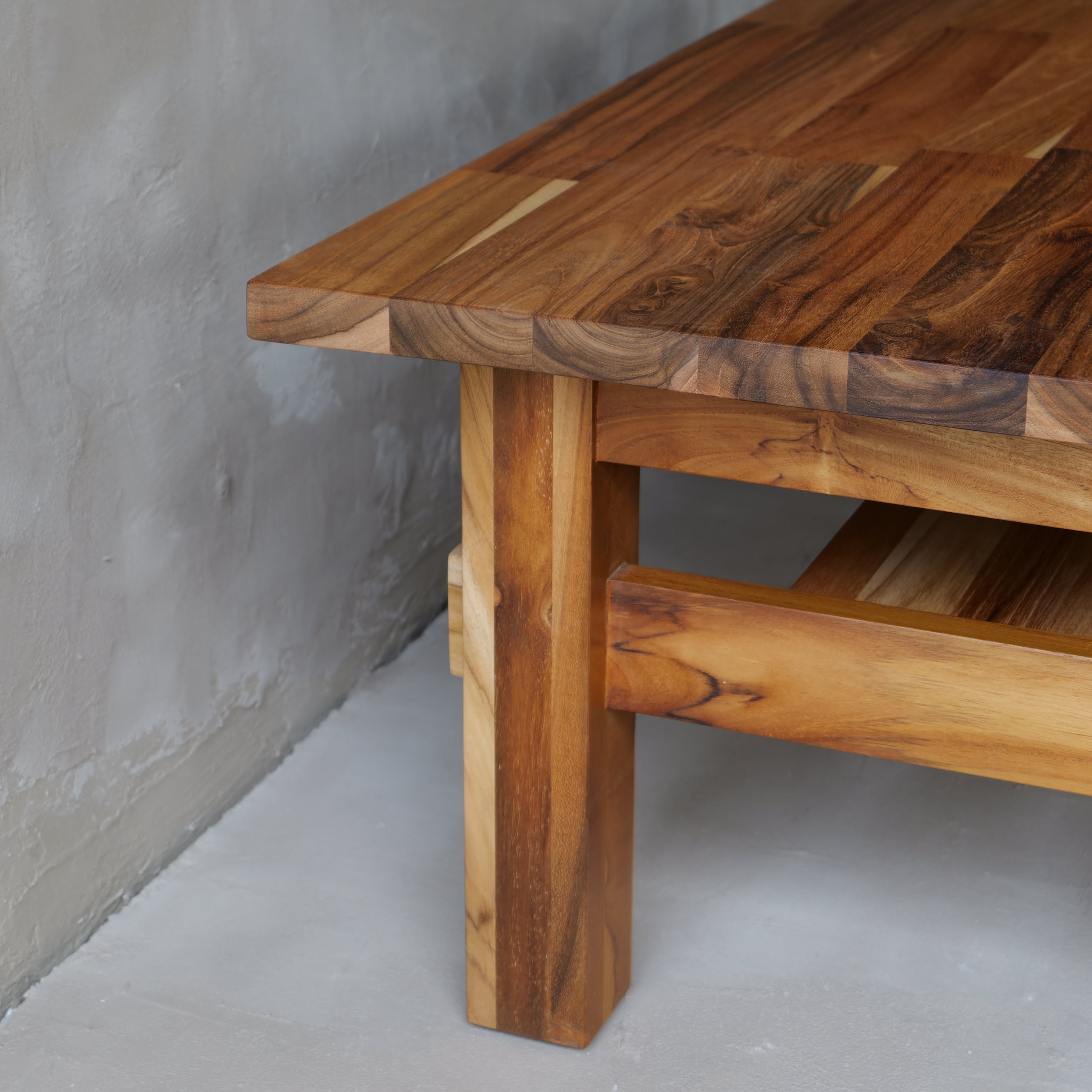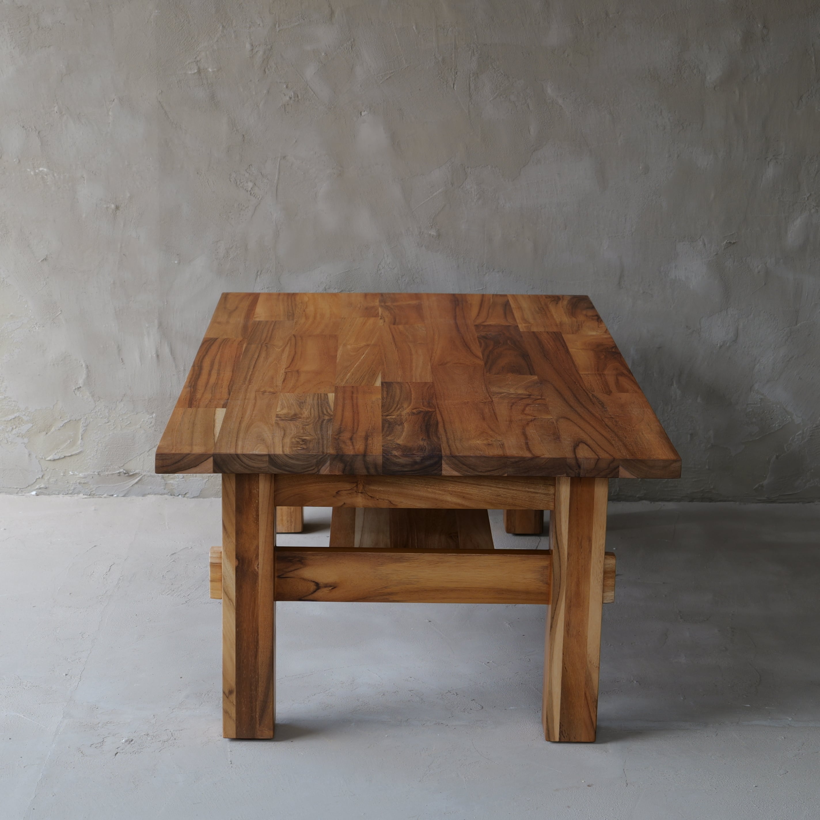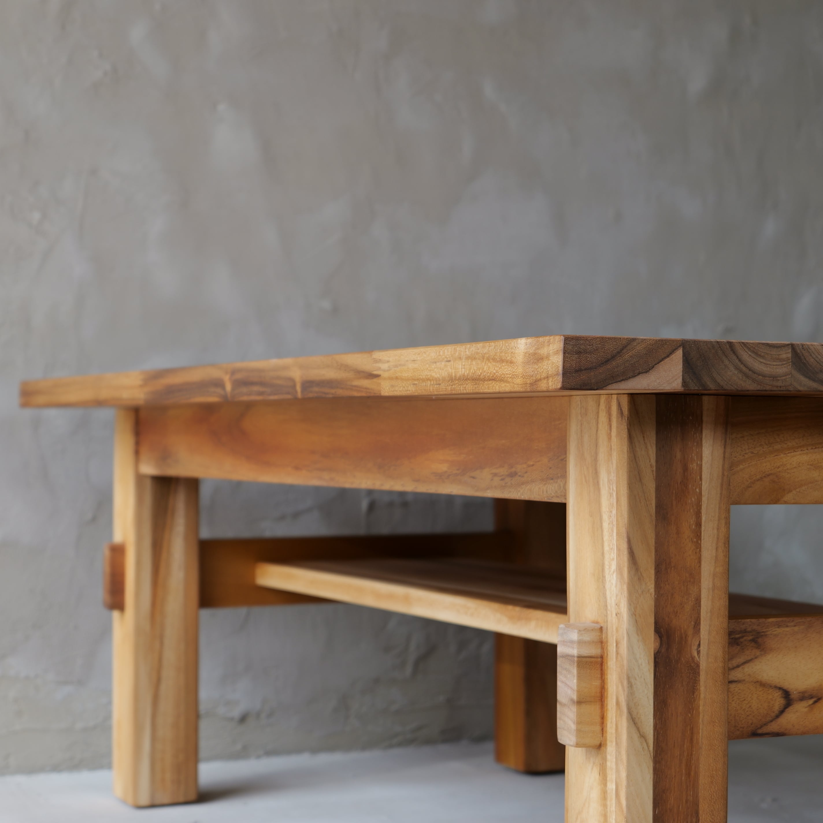 この雰囲気のチーク材ローテーブルを同じようにつくるのは、